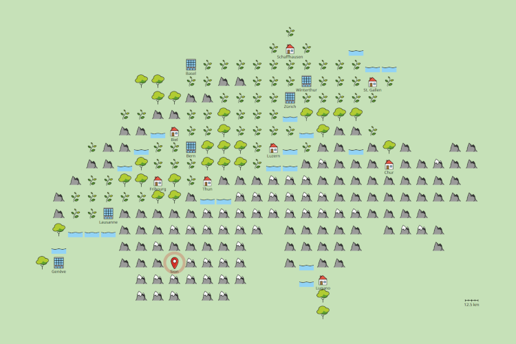 Nachdem ich mich lange mit Geografie beschäftigt und Webapps wie swisspeaX, Altiswiss und Mont programmiert habe, und da dank dem Projekt OpenMoji der Hochschule für Gestaltung Schwäbisch-Gmünd Hunderte hochwertiger Open-source-Emojis zur Verfügung stehen, lag die Idee nahe, dem Beispiel mittelalterlicher Karten mit ihren einfachen topografischen Symbolen zu folgen und eine Emoji-Karte der Schweiz anzufertigen, die – die Zustimmung der User vorausgesetzt – auch gleich anzeigt, wo man sich gerade befindet. Et voilà: Confœderatio emojica.