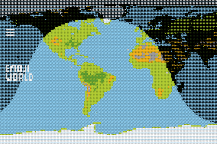 Emoji World: Eine Weltkarte aus 20 000 Emojis mit Tag-und-Nacht-Grenze.